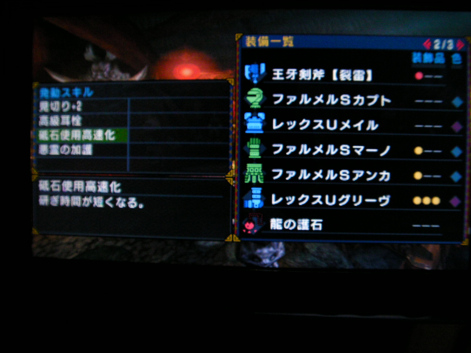 あとは最近始めた双剣なら……業物とか砥石高速化とか弱点特攻ですかね?