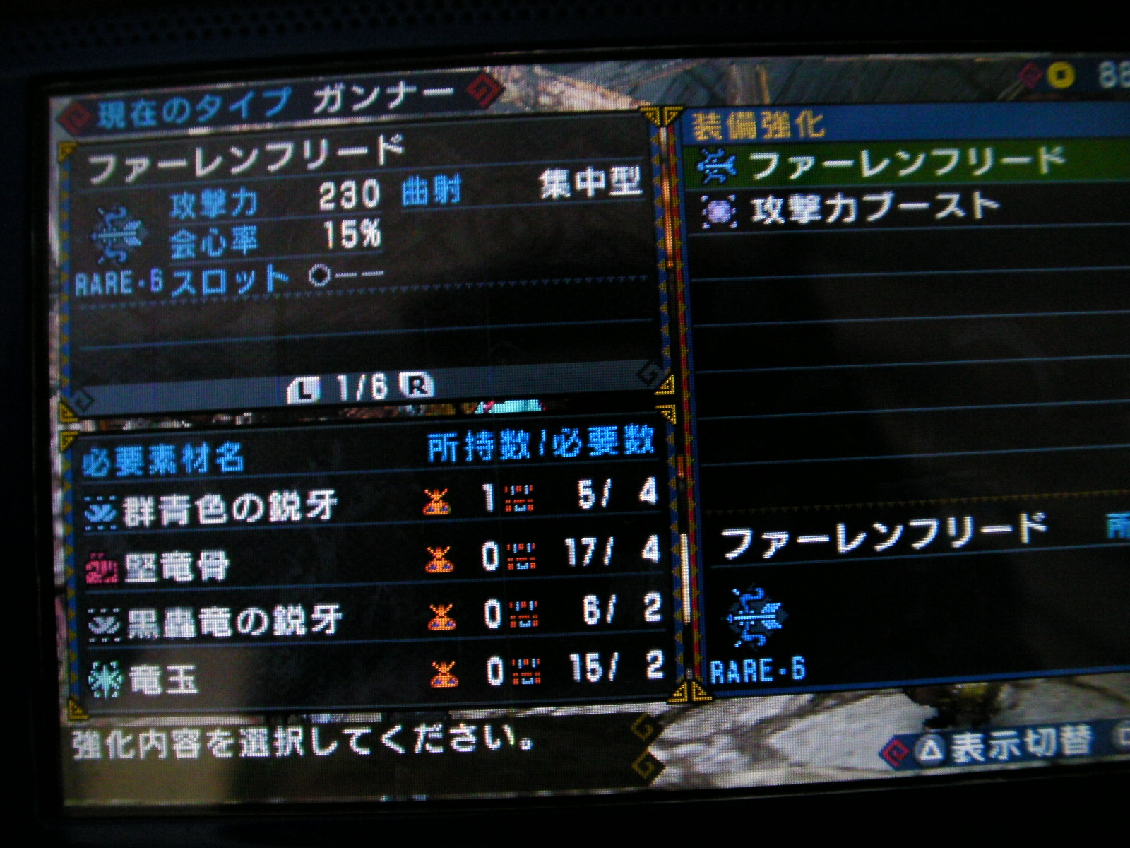 それか重撃付けようかなとか思ってるんですが、素材がたらららららら(ry